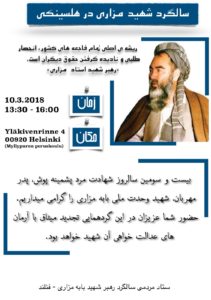 مراسم گرامیداشت شهید وحدت ملی در هلسینکی به تاریخ10.03.18ازساعت13:30تا16:00مکتب ابتدایی مولوپورو