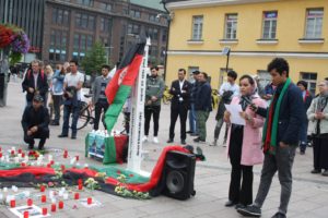 دراین مراسم تعدادی از فعالین فنلندی و افغانستانی حضور پیدا نموده بودند با برافروختن شمع و گذاشتن شاخه های گل در کنار تصاویر شهدا ، یاد و خاطره قربانیان حوادث اخیر به ویژه شهدای اخیر غزنی و موعود را گرامی داشتند.