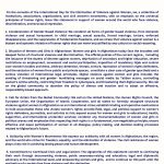 1. Condemnation of Gender-Based Violence: We condemn all forms of gender-based violence, from domestic violence and sexual harassment to child marriage, sexual assaults, forced marriage, torture, enforced disappearance, and the suppression of fundamental freedoms, and we stress that violence against women is a blatant and systemic violation of human rights that can never be justified by any cultural or social reasoning.