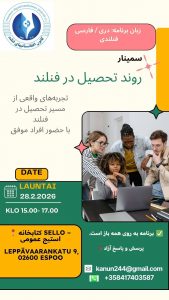 در این سمینار الهامبخش، دانشجویان موفق تجربههای واقعی خود از تحصیل و زندگی در فنلند را با شما شریک میسازند و به پرسشهای شما پاسخ میدهند.