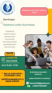 Tule mukaan inspiroivaan seminaariin, jossa menestyneet opiskelijat jakavat omia kokemuksiaan opiskelusta ja elämästä Suomessa sekä vastaavat kysymyksiin!