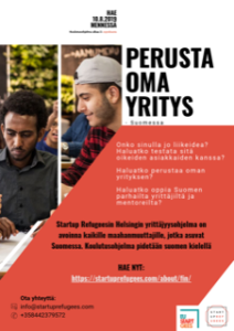 Startup Refugeesin syksyn 2019 yrittäjyysohjelman hakuaika on nyt auki 10.8.2019 saakka. Erityisenä kohderyhmänä ovat turvapaikanhakijat ja pakolaiset. Ajattelimme, että koulutus saattaisi kiinnostaa asiakkaitanne.